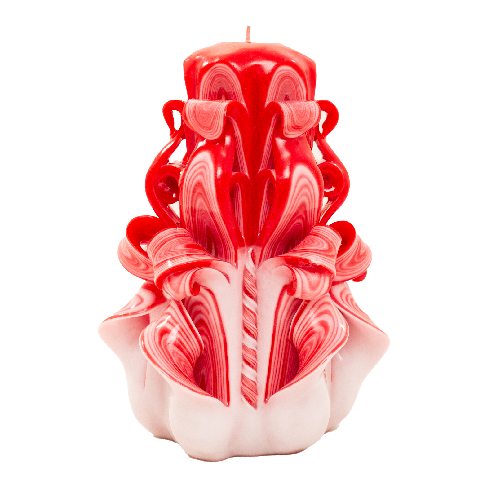 Fiecare detaliu al acestor lumanari este atent lucrat pentru a evidentia frumusetea momentelor speciale. Contrastul dintre rosul intens si albul pur simbolizeaza pasiunea si sinceritatea, transformand aceasta piesa intr-un element decorativ deosebit.