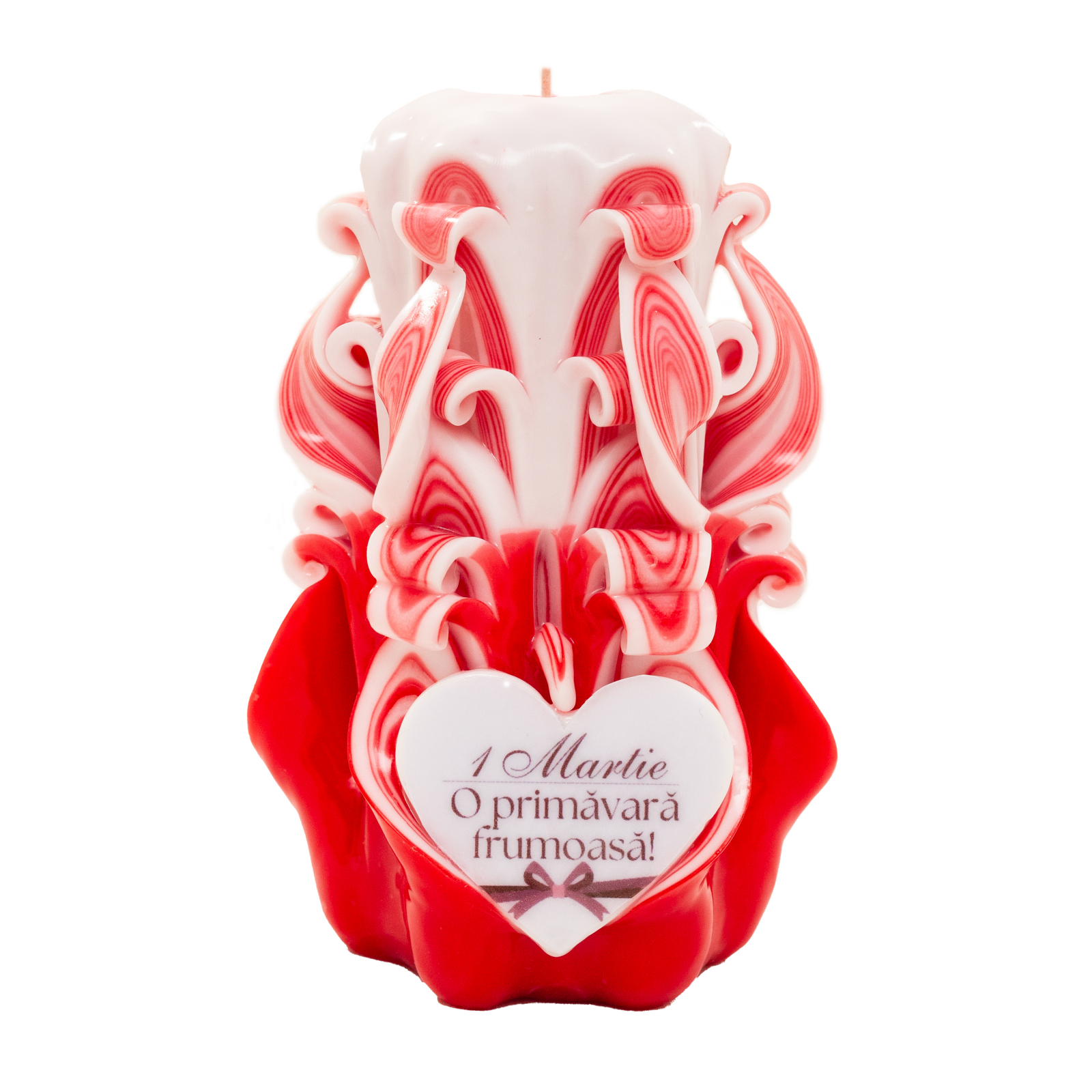Contrastul delicat dintre rosul pasional si albul imaculat, alaturi de detaliile sculptate cu maiestrie, transforma aceasta lumanare intr-o piesa deosebita. Inima sculptata manual adauga un mesaj puternic de afectiune, facand-o un cadou ideal pentru aniversari, nu sunteti momente speciale.