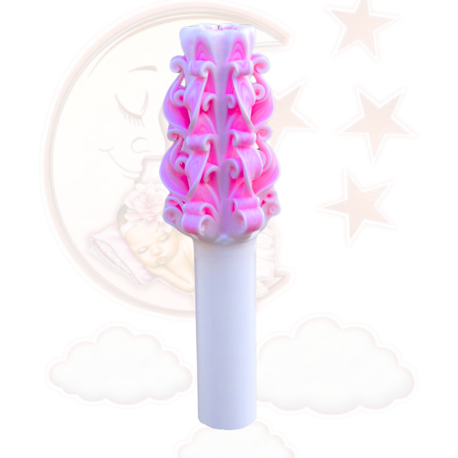 Această lumânare sculptată manual este concepută special pentru ceremonia de botez, simbolizând începutul unui drum comun și lumina momentelor importante din viața copilului tău. Este realizată cu atenție la detalii și aduce o notă de rafinament și semnificație fiecărui eveniment.