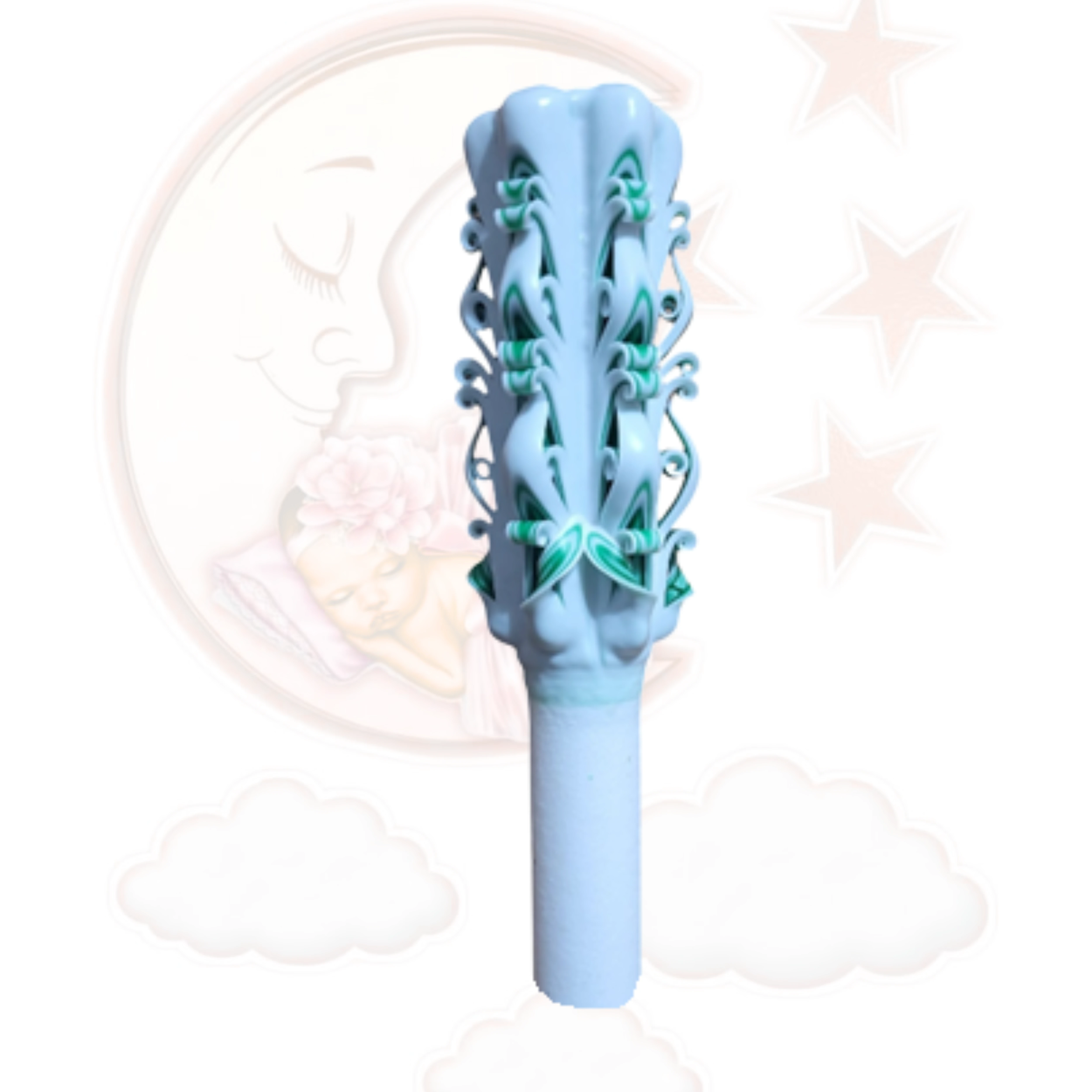 Lumânarea de Botez lucrată manual TAALS este accesoriul perfect pentru a marca unul dintre cele mai importante momente din viața copilului – Botezul. Designul său elegant, cu detalii realizate cu grijă, transformă fiecare Botez într-o amintire rafinată pentru familie.