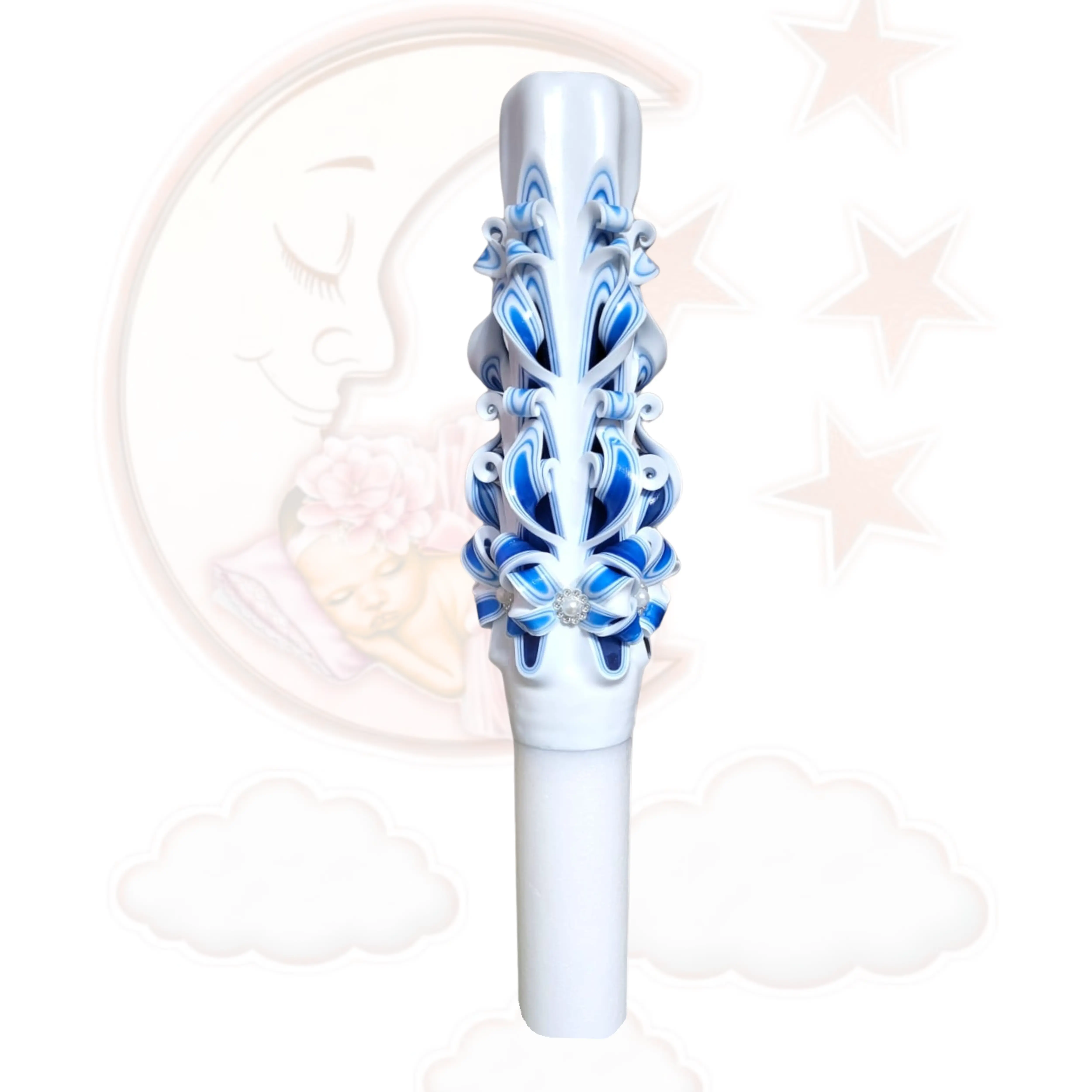 Lumânarea de botez lucrată manual ZALINA este alegerea ideală pentru un moment important din viața unui copil, oferind rafinament și căldură fiecărei ceremonii de botez. Designul său unic, realizat cu atenție la detalii, adaugă o notă specială și simbolică evenimentului.