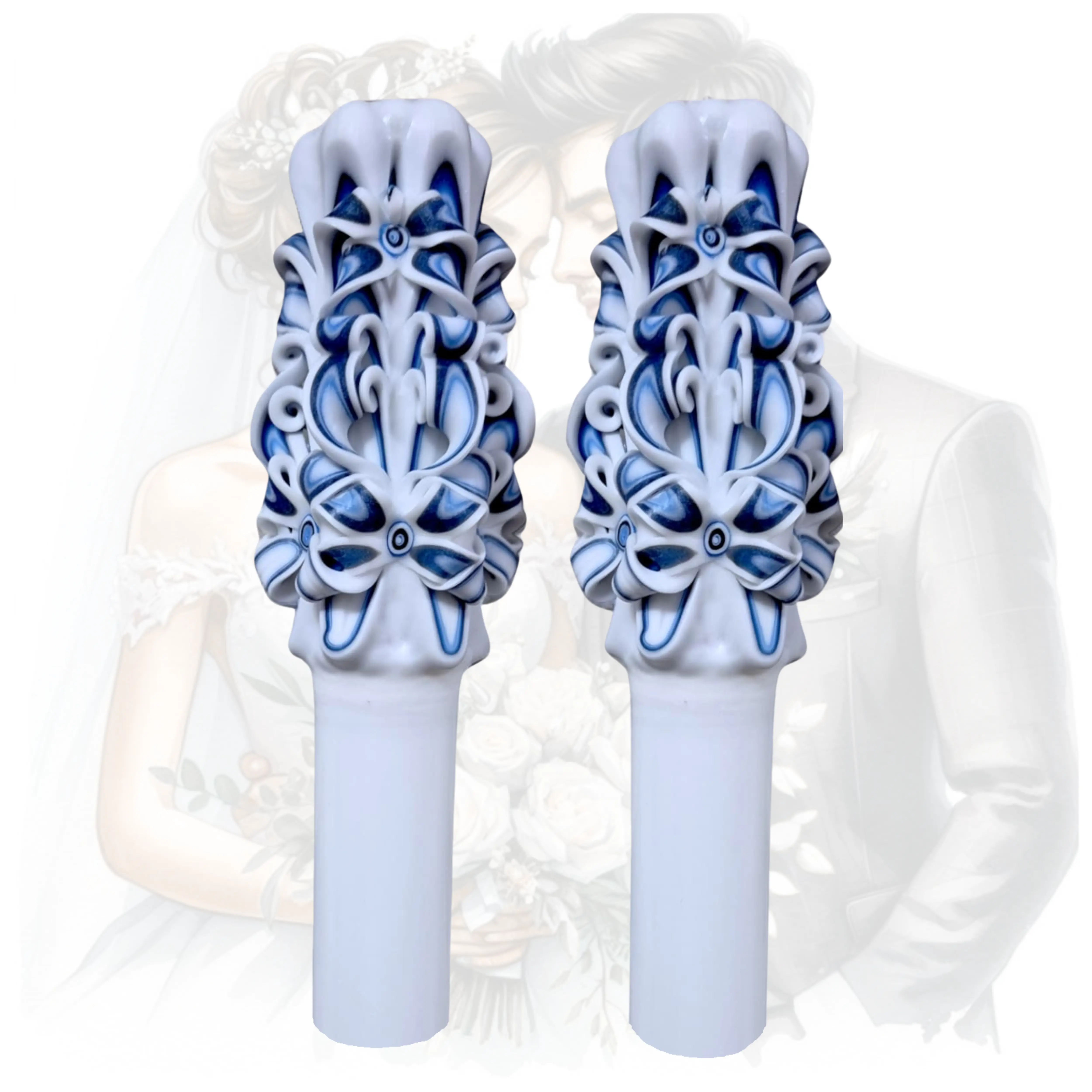 Această lumânare sculptată manual este concepută special pentru ceremonia de cununie, simbolizând începutul unui drum comun și lumina momentelor importante din viața de cuplu. Este realizată cu atenție la detalii și aduce o notă de rafinament și semnificație fiecărui eveniment.